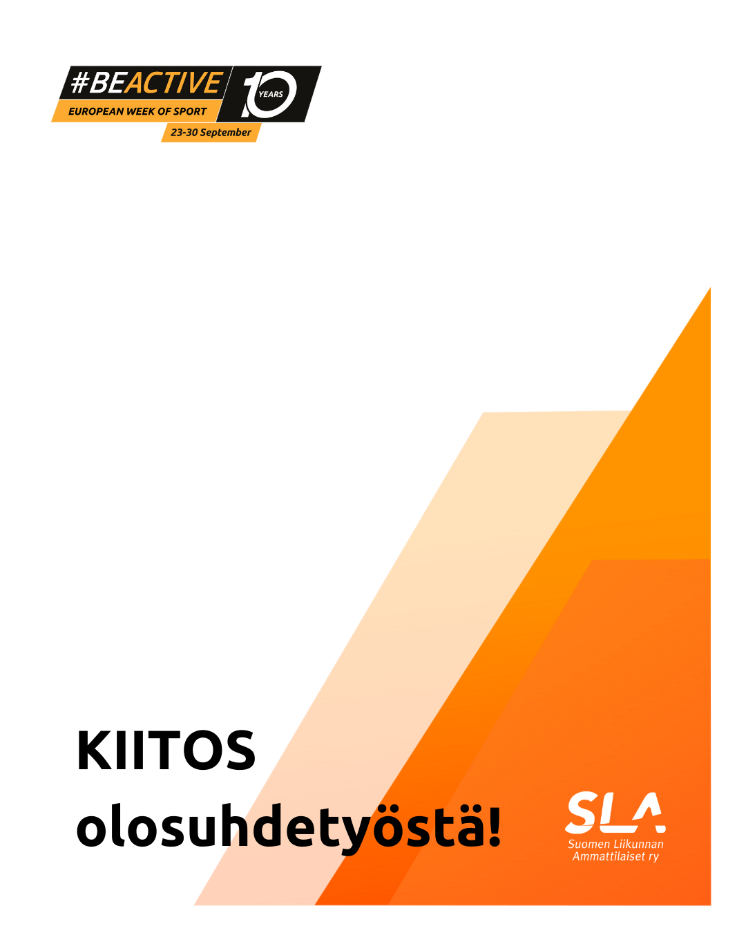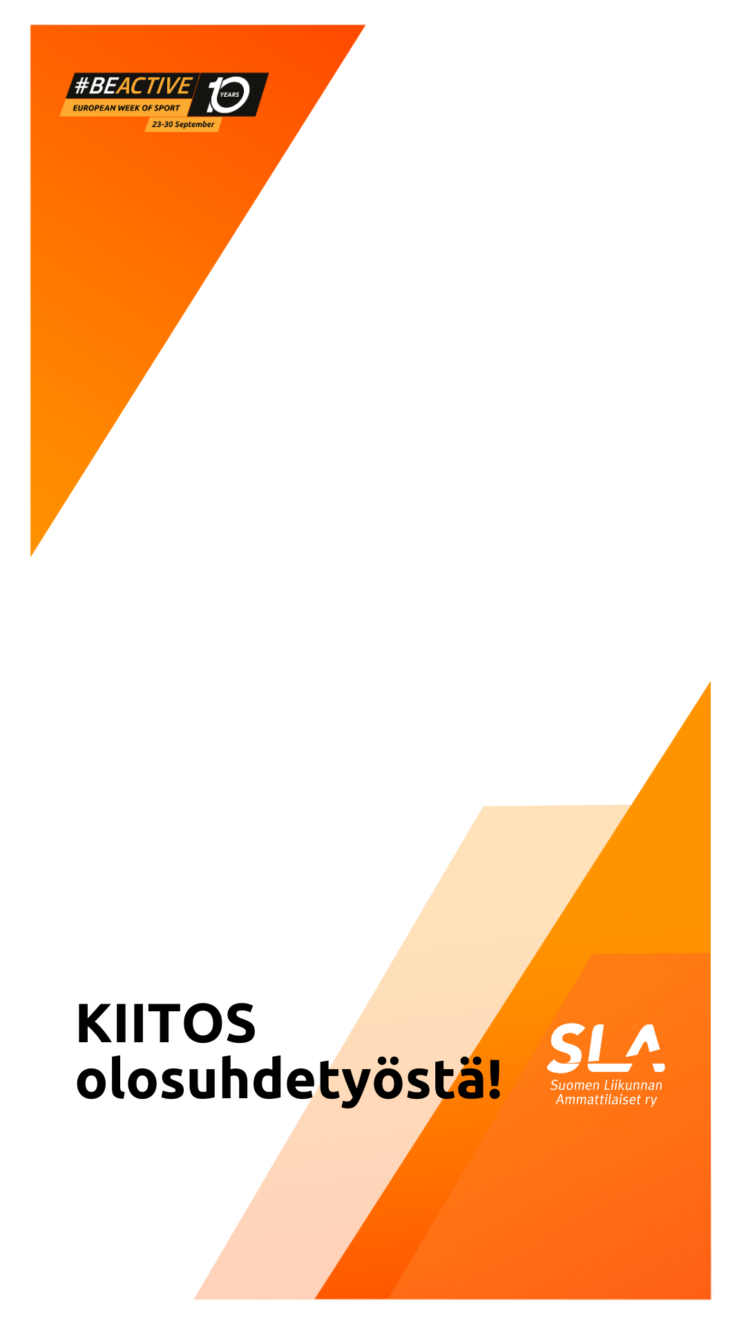Postaa omaan sosiaalisen median kanavaan kiitokset olosuhdetyötä tekeville alan ammattilaisille hästägillä #olosuhdetyö #beactive ja tägää @suomenliikunnanammattilaiset